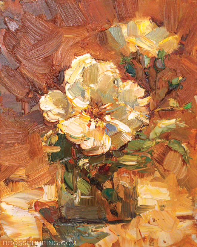 ♦ 345. Floral - White Rose Evening 20x25 cm | 8x10" - 425.- EUR Oils/Canvas panel | Roos Schuring 2025