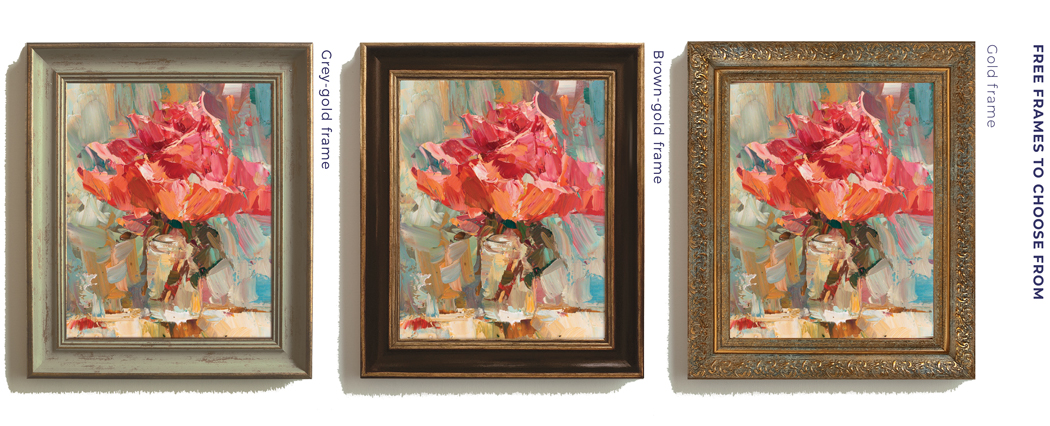 ♦ What is 453 EUR converted to US Dollars? On DEC 28- 2025 it's 533 USD. This is a total price, frame and shipping (and tariffs) are included. The painting arrives ready to hang on your wall.