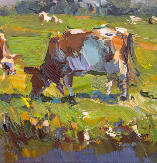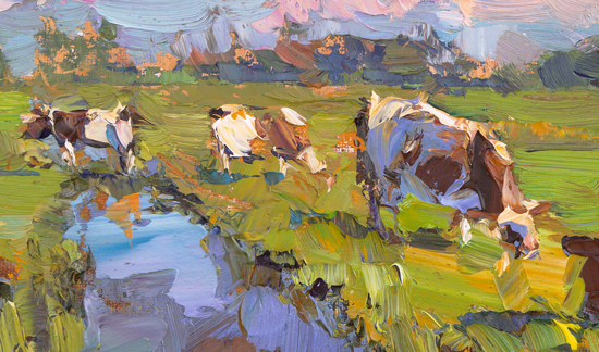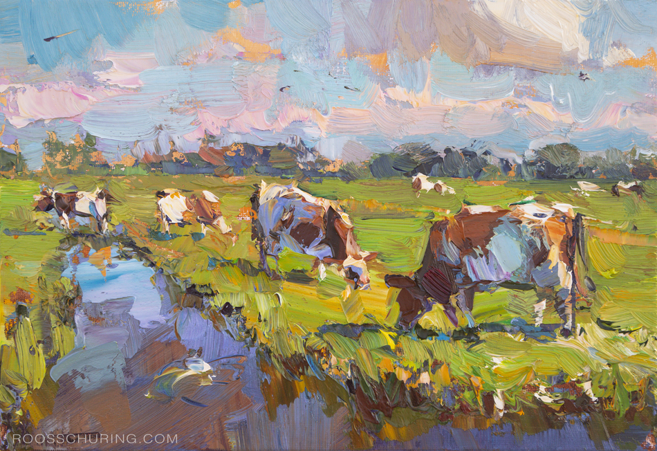 ♦308. LA05-2025 Landscape Cows, Pink Light Summer Senses 21x30 cm | 8.3x11.8" - 750.- EUR Oils/Canvas panel | Roos Schuring 2025