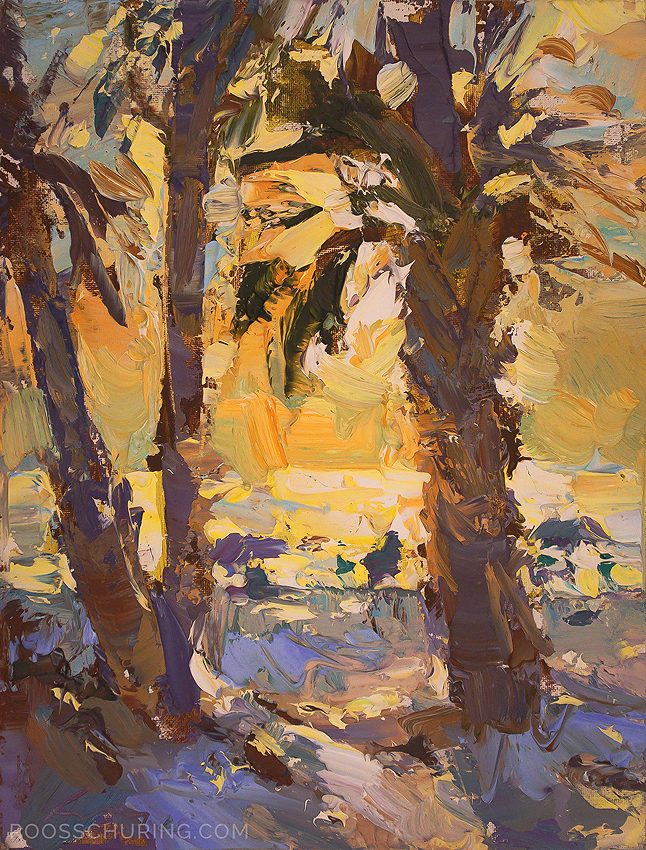 ♦ 372. Florida, Sunset View Through Palms 20x25 cm | 8x10" - 525.- EUR Oils/Canvas panel | Roos Schuring 2026