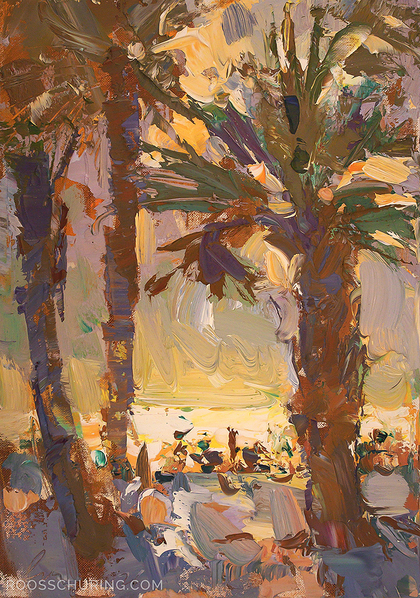 ♦ 382. Florida, View Through Trees - Golden Light 21x30 cm | 8.3x11.8" - 625.- EUR Oils/Canvas panel | Roos Schuring 2026