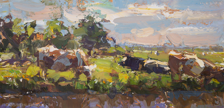 300. LSU02-2025 Landscape Cows, A Summer's Day 15x30 cm | 5.9x11.8" - 425.- EUR Oils/Canvas panel | Roos Schuring 2025