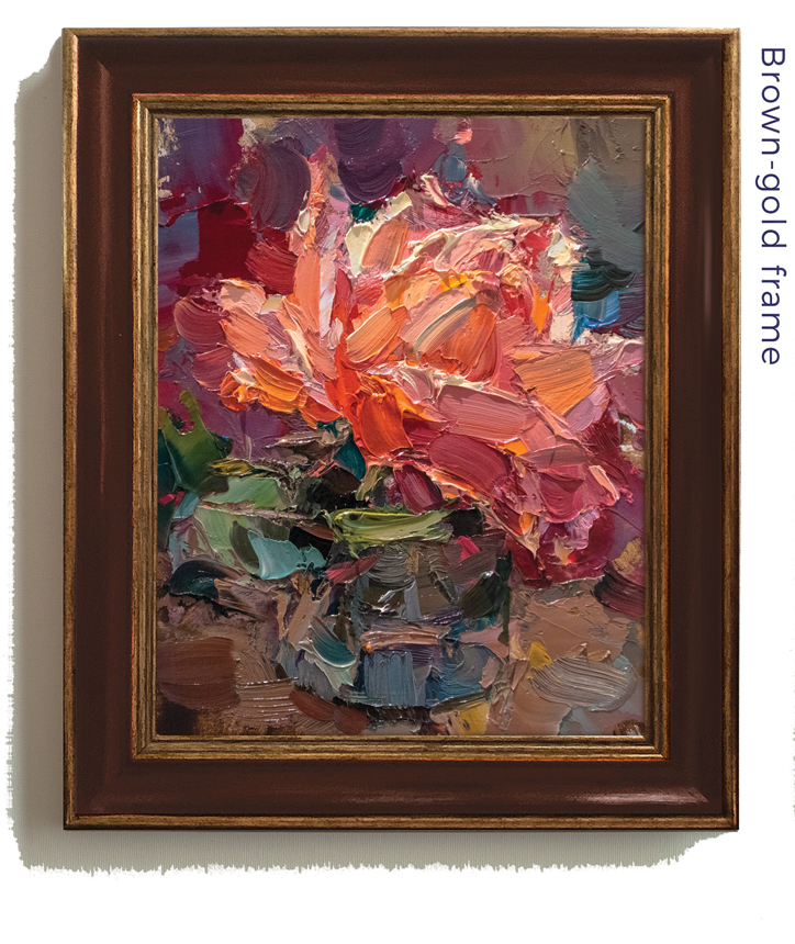 Recommended: This painting is currently framed in/looking best in a reddish dark brown frame, as shown here