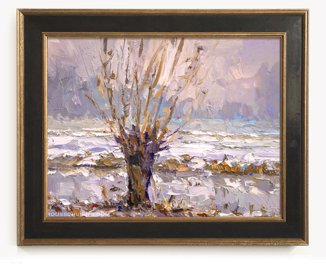 ♦ 364. LW14-2026 Landscape, O Ye Pretty Willow Tree, Fog and Snow 24x30 cm | 9.6x11.8" - 675.- EUR Oils/Canvas panel | Roos Schuring 2026